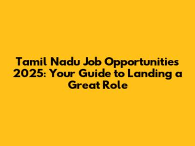 Tamil Nadu Job Opportunities 2025