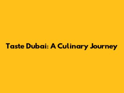 Taste Dubai: A Culinary Journey