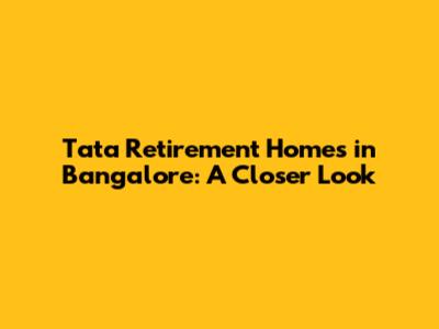Tata Retirement Homes In Bangalore: A Closer Look