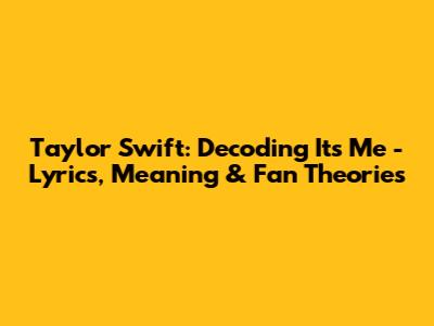 Hey Swifties! Let's dive deep into one of Taylor Swift's most captivating songs, a track that has everyone buzzing: "It's Me." This song, with its intriguing lyrics and layers of meaning, offers a fascinating look into Taylor's artistry. We're going to break down the lyrics, explore the potential meanings, and discuss some of the most popular fan theories surrounding the song. Buckle up, because we're about to embark on a lyrical journey! Get ready for an in-depth analysis of what makes this song so special. This is more than just a song; it's a conversation starter, a puzzle, and a testament to Taylor's incredible ability to connect with her fans on a profound level. So, grab your favorite album, and let's get started.