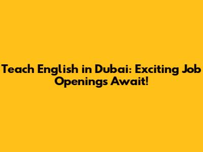 Teach English In Dubai: Job Openings