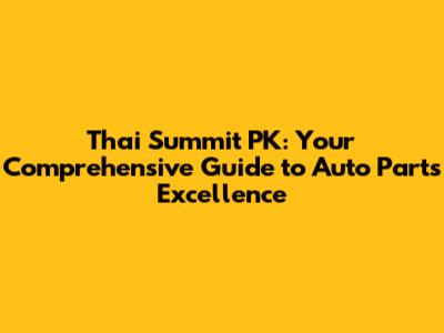 Thai Summit PK: Your Guide To Auto Parts Excellence