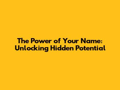 The Power Of Your Name: Unlocking Hidden Potential
