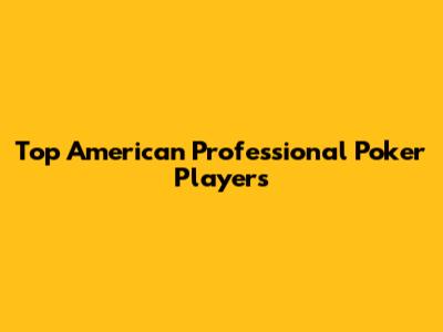 Top American Professional Poker Players