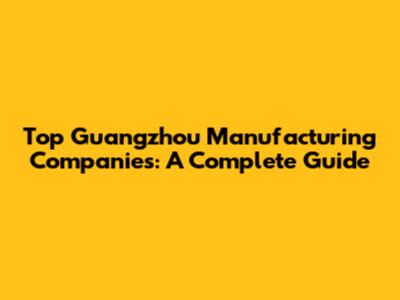 Top Guangzhou Manufacturing Companies: A Complete Guide