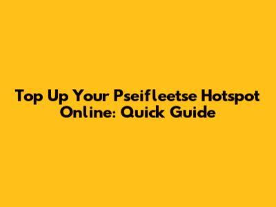 Top Up Your Pseifleetse Hotspot Online: Quick Guide