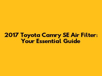 Hey there, car enthusiasts! Let's dive into something super important for your 2017 Toyota Camry SE: the air filter. Keeping your air filter in tip-top shape is crucial, and it's something you can totally handle yourself. It's like giving your Camry a breath of fresh air, literally! In this comprehensive guide, we'll walk you through everything you need to know about the 2017 Toyota Camry SE air filter, from why it matters to how to replace it. So, grab your tools (or just your phone to read along!), and let's get started!