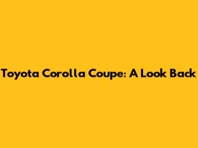 Toyota Corolla Coupe: A Look Back