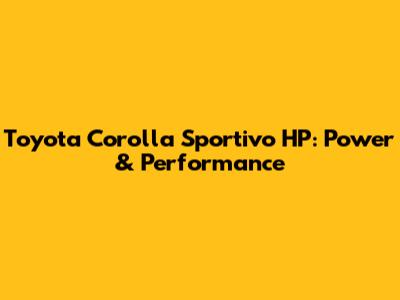 Toyota Corolla Sportivo HP: Power & Performance