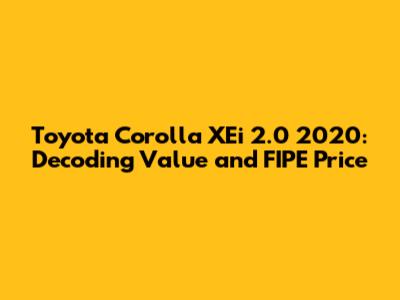 Hey car enthusiasts! Are you guys eyeing the Toyota Corolla XEi 2.0 2020? It's a fantastic choice! The Corolla is known for its reliability, fuel efficiency, and overall value. One of the first things you'll probably want to know is its price. This is where the FIPE (Fundação Instituto de Pesquisas Econômicas) table comes in handy. It provides a benchmark price for used cars in Brazil. So, let's dive into the Toyota Corolla XEi 2.0 2020 FIPE price, what impacts it, and everything you need to know before making a purchase.