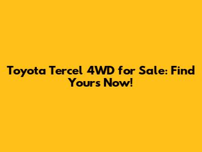 Toyota Tercel 4WD For Sale: Find Yours Now!