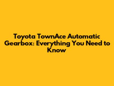 Toyota TownAce Automatic Gearbox: Everything You Need To Know