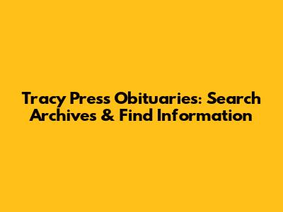 Tracy Press Obituaries: Search Archives & Find Information