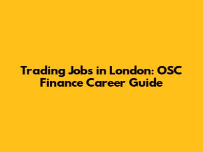 Trading Jobs In London: OSC Finance Career Guide