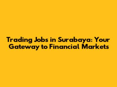 Trading Jobs In Surabaya: Your Gateway To Financial Markets
