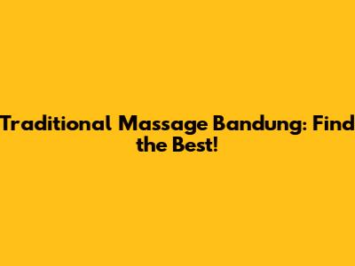 Traditional Massage Bandung: Find The Best!