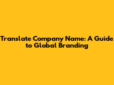 Translate Company Name: A Guide To Global Branding