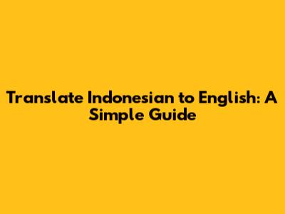 Translate Indonesian To English: A Simple Guide