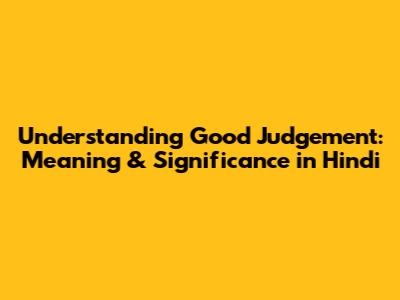 Understanding Good Judgement: Meaning & Significance In Hindi