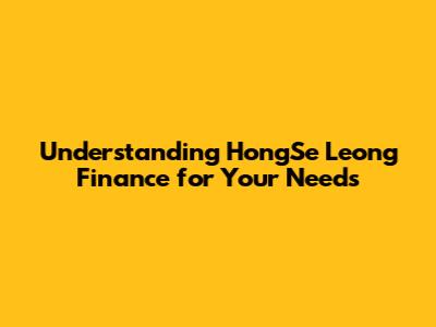 Understanding HongSe Leong Finance For Your Needs