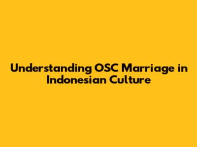 Understanding OSC Marriage In Indonesian Culture