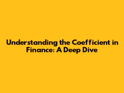 Understanding The Coefficient In Finance: A Deep Dive