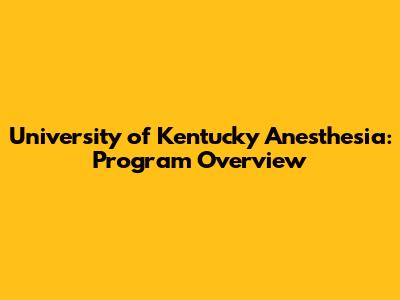 University Of Kentucky Anesthesia: Program Overview