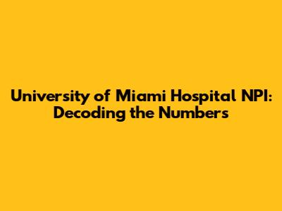 Hey guys! Ever wondered about those mysterious numbers associated with hospitals? Well, today, we're diving deep into the National Provider Identifier (NPI), specifically for the University of Miami Hospital. This seemingly complex code is super important, so let's break it down and make it easy to understand. We'll cover everything from what an NPI is, why it matters, and how you can find the University of Miami Hospital's NPI. So, grab a coffee (or your beverage of choice), and let's get started!