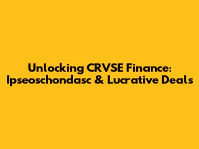 Unlocking CRVSE Finance: Ipseoschondasc & Lucrative Deals