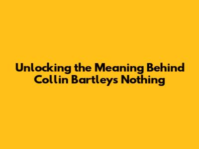Unlocking The Meaning Behind Collin Bartley's 'Nothing'