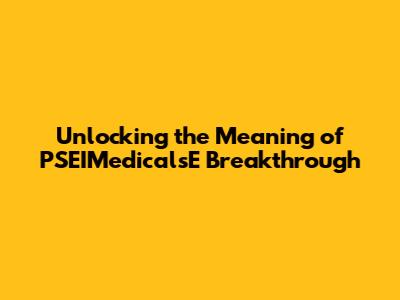 Unlocking The Meaning Of PSEIMedicalsE Breakthrough