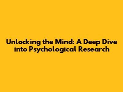 Unlocking The Mind: A Deep Dive Into Psychological Research