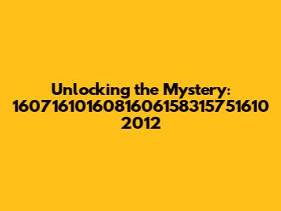 Unlocking The Mystery: 1607161016081606158315751610 2012
