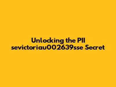 Unlocking The PII Sevictoriau002639sse Secret