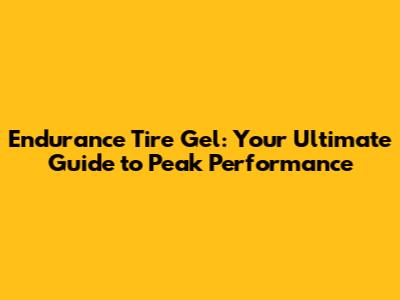 Unlocking The Power Of Endurance Tire Gel: What You Need To Know