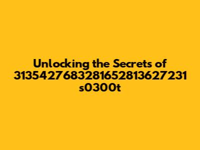 Unlocking The Secrets Of 3135427683281652813627231 S0300t