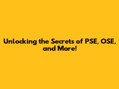 Unlocking The Secrets Of PSE, OSE, And More!