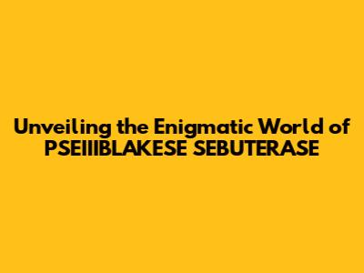Unlocking The Secrets Of PSEIIIBLAKESE SEBUTERASE