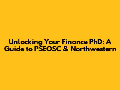 Unlocking Your Finance PhD: A Guide To PSEOSC & Northwestern