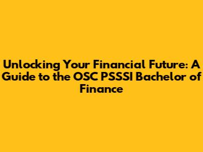 Unlocking Your Financial Future: A Guide To The OSC PSSSI Bachelor Of Finance