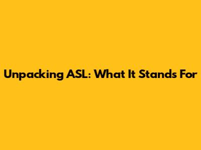 Unpacking ASL: What It Stands For