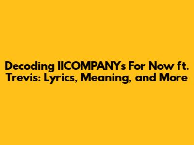 Unpacking IICOMPANY's 'For Now' Featuring Trevis: A Lyric Deep Dive