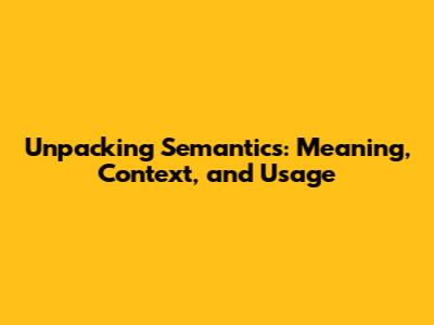 Unpacking Semantics: Meaning, Context, And Usage