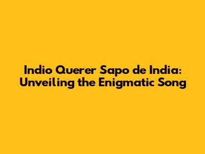Unraveling The Mystery: Indio Querer Sapo De India Song