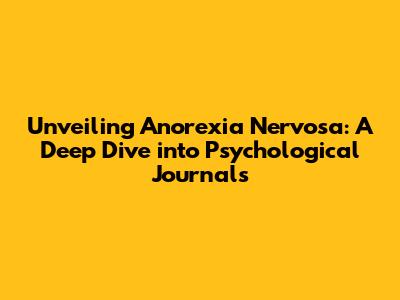 Unveiling Anorexia Nervosa: A Deep Dive Into Psychological Journals