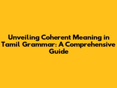 Unveiling Coherent Meaning In Tamil Grammar: A Comprehensive Guide
