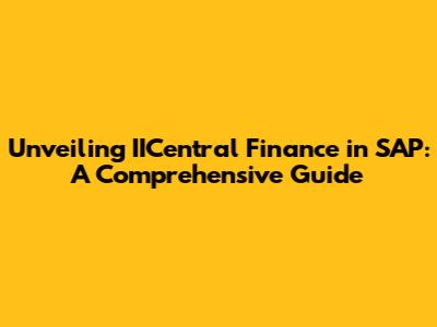Unveiling IICentral Finance In SAP: A Comprehensive Guide