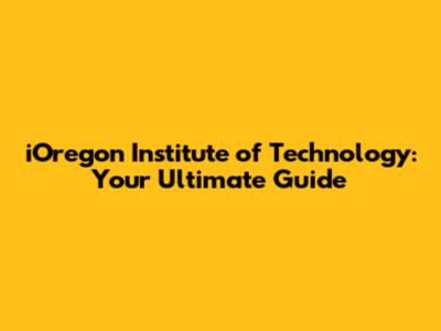 Unveiling IOregon Institute Of Technology: A Comprehensive Guide
