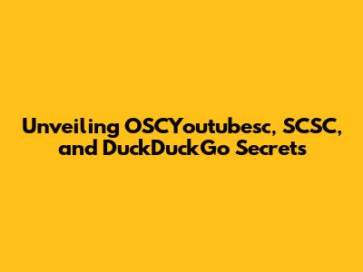 Unveiling OSCYoutubesc, SCSC, And DuckDuckGo Secrets