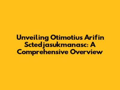 Unveiling Otimotius Arifin Sctedjasukmanasc: A Comprehensive Overview